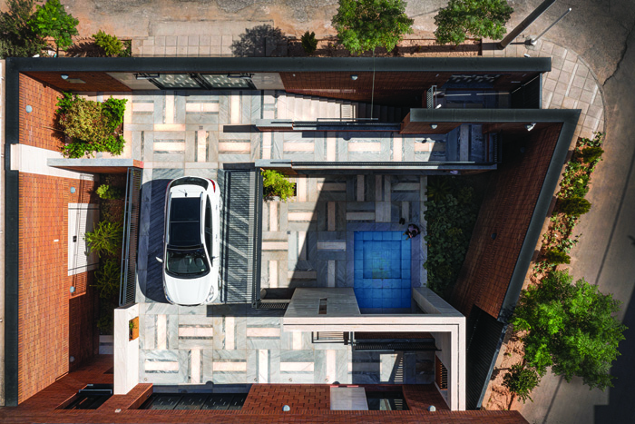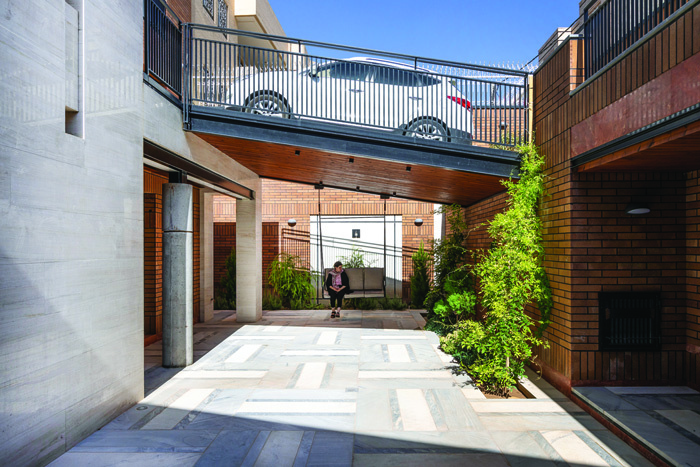 With an intergenerational living approach, Cedar2 responds to how different generations of a family can live together. The design began from placing the main terrace with a view to the Zoroastrian Towers of Silence and the family living room at the building's heart. A sunken garden (godal-baghcheh) -- a traditional Yazd pattern -- provides light for the basement unit and a safe space for families and children.