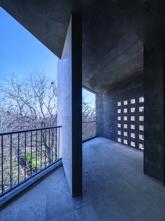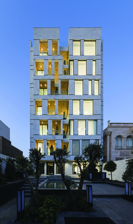 The six-story "Bahar" building, by drawing on past architectural patterns, seeks to revive the central role of open and semi-open space as the primary organizing element in contemporary apartments. The open/semi-open space (terrace or courtyard) was positioned at the center of each unit and connected to the main entrance through a hashti — a simplified redefinition of historical patterns. The central terrace became the beating heart of the contemporary home.
