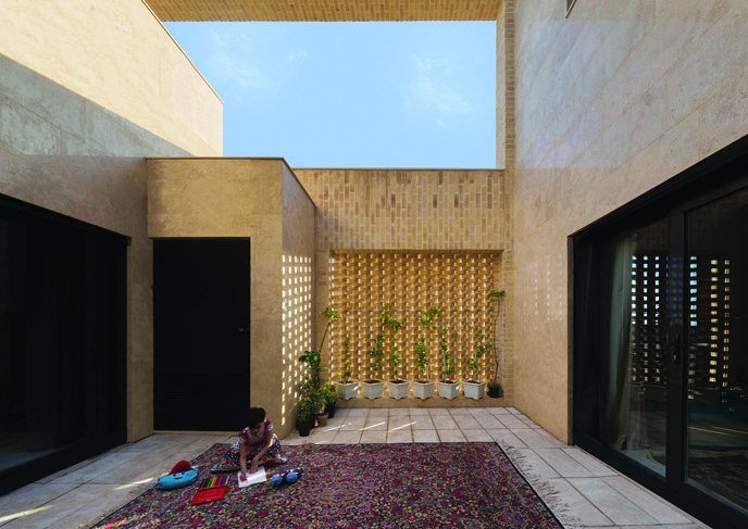 The walls are clad in traditional handmade brick, which in addition to being compatible with the city's climate, creates a mental bond with the Iranian house. Here, the courtyard is not merely an empty or decorative space, but a space that establishes a connection between human and nature, allowing life to flow through every corner of the yard.