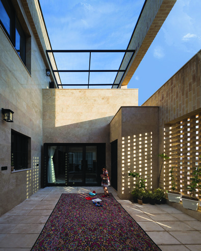 The central courtyard and the upper courtyard, in visual connection with each other, function as two planes of a quiet conversation between themselves, the earth, and the sky. Their semi-open walls allow the desired desert light and breeze to flow into the building while maintaining privacy. In the typology of desert houses, the courtyard typically occupies the building's center, but in this project, by shifting the courtyard toward the edge and redefining the peripheral walls, a contemporary interpretation of the central courtyard was achieved. At the urban scale, this architecture chooses the language of dignity and simplicity — a quiet expression that creates a distinct presence in today's chaotic fabric.