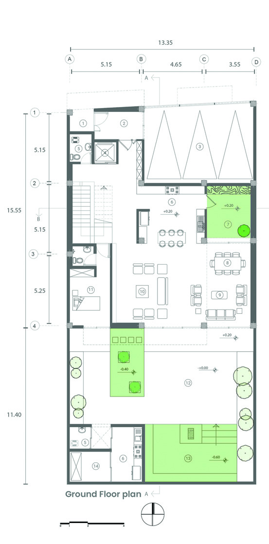 This project is an attempt to redefine the spatial patterns of Gilan's vernacular architecture within a contemporary framework. The approach, rather than merely reproducing forms or solely using traditional materials, is grounded in reinterpreting the spatial logic and organizational principles of vernacular architecture. The core design idea centers on "porous and interstitial" spaces — spaces that transform the binary boundary of "inside/outside" into a continuous spectrum of spatial qualities. Porches, terraces, and semi-open surfaces serve as intermediary spaces, elevating the dwelling experience from a single-layered, enclosed state to a multi-layered, permeable one.