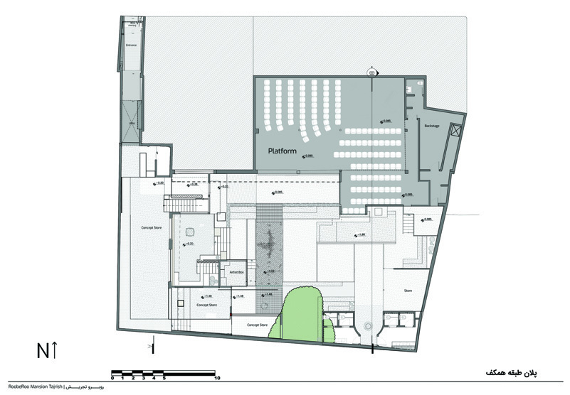 Rooberoo Mansion functions like a small plaza within the city — a place where spaces look both inward and connect outward. Paths flowing through its body and viewpoints opening to the outside strive to draw the vibrant urban life of Tajrish Square and its surroundings into the complex. The result is an urban solution that, without compelling people to consume a specific function, invites them to a collective and public experience — a multilayered network that turns moments into discoveries, where choosing and wandering through paths becomes part of the feeling of being present in the space.